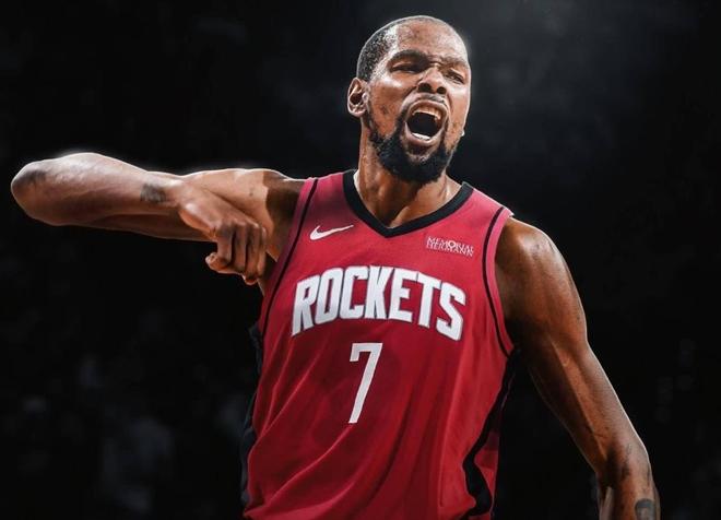 今年休赛期,杜兰特在一笔七队大交易中,被送到了火箭队,上赛季已经37岁的他,依然能够场均砍下26.6分6篮板4.2助攻,投篮命中率52.7%,三分命中率43%。