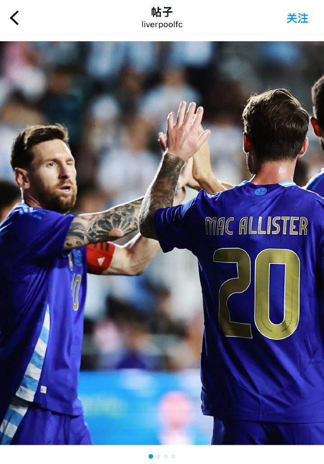 对手在歌颂梅西,队友所属的俱乐部哪怕是豪门,也想蹭热度。比如利物浦和国米,他们有球员是阿根廷国脚。本来这只是一场热身赛,没必要大张旗鼓宣传自己的球员,然而他们就这样干了。
