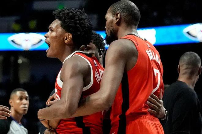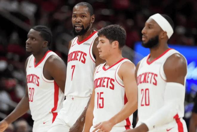 死亡五大这样的战术设计让火箭在季前赛中展现出令人期待的潜力,球迷们也很好奇,这套阵容在常规赛中能发挥多大的威力?或许真的会有超过五小的威力。目前火箭在季前赛中保持三连胜,战术实验和球员磨合都取得了显著成效。杜兰特作为球队的核心球员,在季前赛中逐渐增加出场时间。首场比赛他仅出战半场,此役则打了三节,展现出与年轻队友日益默契的化学反应。杜兰特的球风极具适配性,无论在哪支球队都能无缝融入。在本场比赛中,当火箭在第二节陷入得分荒时,杜兰特挺身而出,依靠个人单打能力稳住局面。