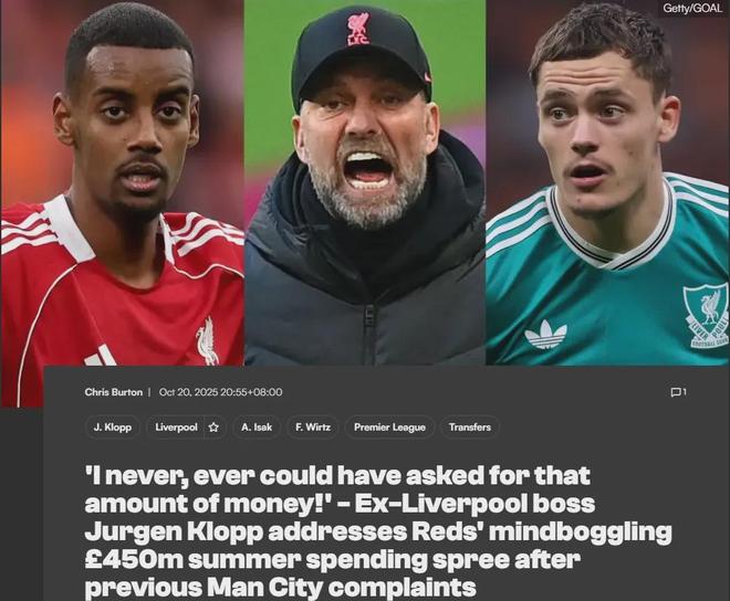 利物浦今夏在转会市场上豪砸4.5亿英镑买人(非净投入),对此克洛普在接受采访时表示,他执教红军时永远不可能向高层索要这么多钱买人。