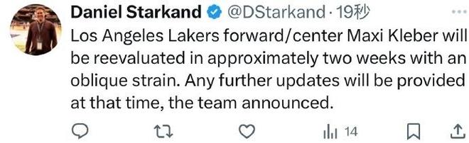 湖人再遭打击:克勒贝尔斜方肌拉伤缺席揭幕战预计两周后复查