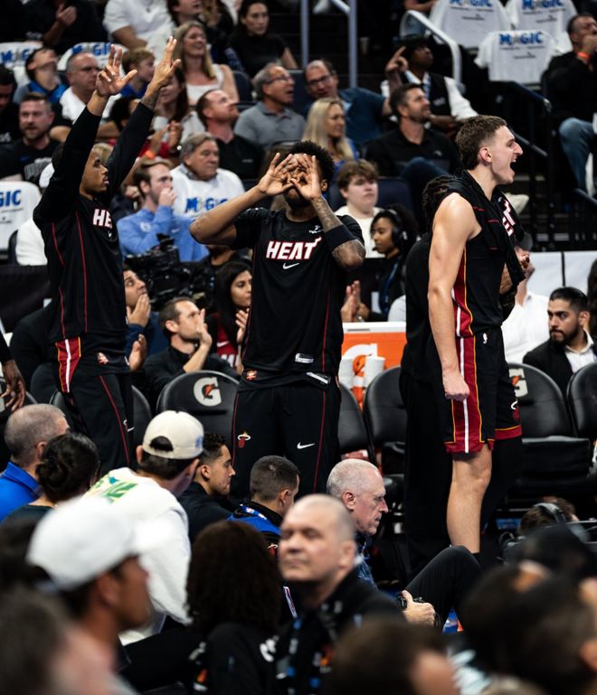 小卡特关键篮板+决胜2罚!魔术三巨71分逆转热火贝恩比庆祝动作