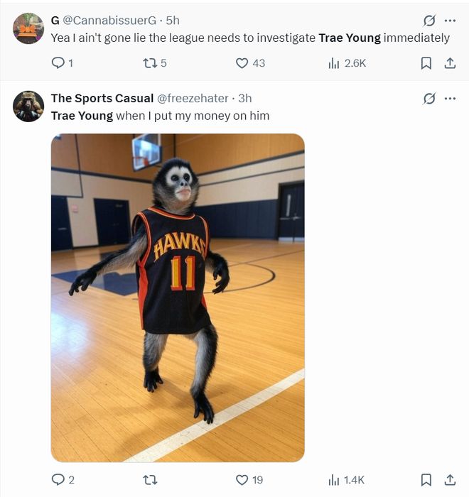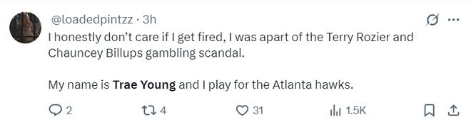 3.美球迷调侃特雷杨无惧卷入罗齐尔、比卢普斯的涉赌丑闻中。