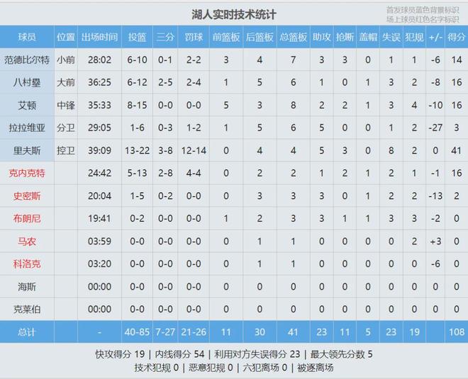湖人今天只有10名球员可以出战,布朗尼进入轮换名单。昨天里夫斯爆砍51分11板9助2断,看看他今天能否延续火热手感。本赛季前三场比赛,湖人全队的罚球总数达到106个,一共净胜对手38个罚球,两项数据均是联盟第一。