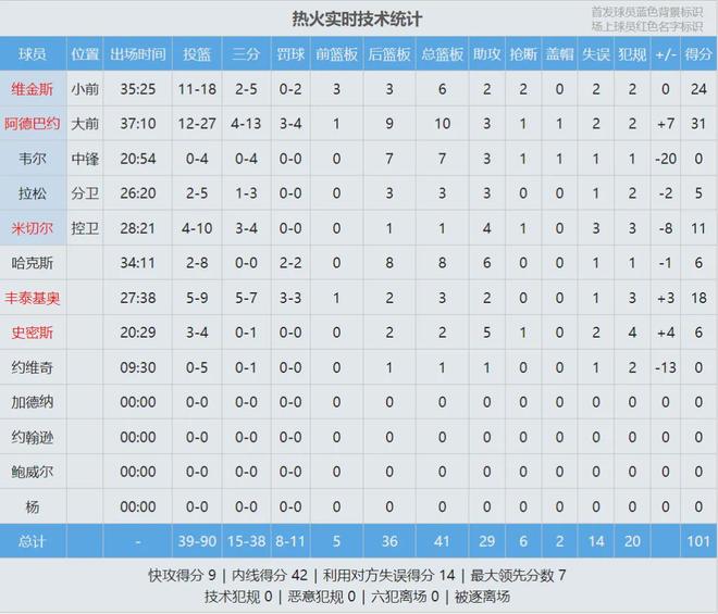 最后来看看本场数据,你觉得马刺本赛季能重返季后赛吗?