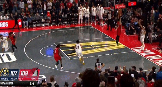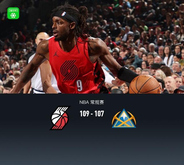 第四节,开节短暂拉锯之后,开拓者启用克林根、里斯双塔阵容,前半节双方持续保持拉锯,掘金穆雷、瓦兰联手得分回应保持8分上下领先,后半节双方换回主力展开决战,开拓者卡马拉、穆雷、阿夫迪亚接连得分迅速追平比分,掘金穆雷高难度中投止血,但紧跟开拓者霍勒迪再度三分反超,比赛来到最后3分钟关键时刻,掘金约基奇、穆雷、戈登接连得分再度领先5分,开拓者格兰特、阿夫迪亚相继冲框得分再度追至2分分差,随后掘金进攻不中,开拓者格兰特反击造杀伤两罚全中追平比分,最后27.7秒,开拓者连续成功防下掘金进攻,最后3秒留给开拓者,格兰特投篮造成戈登犯规两罚全中,最后1秒掘金后场发球长传约基奇极限压哨绝平不中,开拓者109-107险胜掘金。