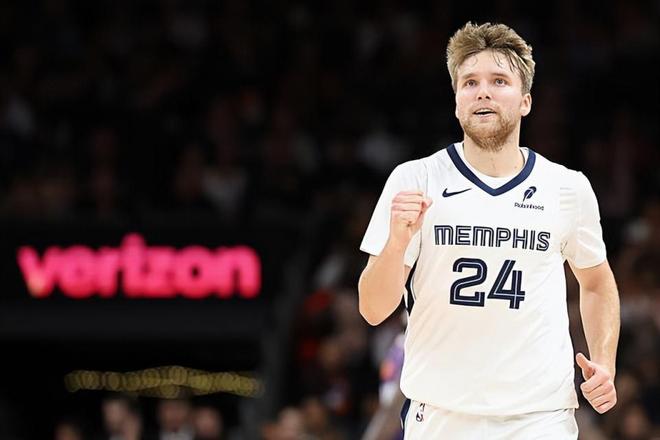 斯潘塞出生于2000年4月,现年25岁,身高193cm,体重93kg,是去年NBA选秀大会中灰熊在次轮第52顺位选中的来自康涅狄格大学的后场新星。在上赛季的NBA常规赛中,斯潘塞总共出场25次,场均出场时间达到了10.1分钟,场均数据为4.2分1.2篮板1.4助攻0.4抢断,还有0.2次失误和0.9次犯规,投篮命中率41.5%,三分命中率36.5%,罚球命中率100%。到了季后赛,受制于双向合同球员的身份,斯潘塞并没有办法完成出场。本赛季开季至今,斯潘塞在前8场比赛中的场均出场时间达到了16.9分钟,场均数据为7.9分2.3篮板3.4助攻0.8抢断,还有1.3次失误和1.4次犯规,投篮命中率40.9%,三分命中率45.7%,罚球命中率84.6%。