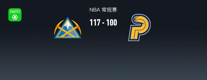 第四节掘金斯特劳瑟拿下10分,步行者西亚卡姆拿下4分,最终掘金117-100战胜步行者