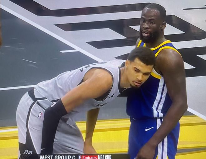 回顾一下比赛,开场福克斯轻松上篮+定点三分,库里很快撤步三分开张,追梦格林和理查德连续上分。中段巴特勒顶着文班亚马强攻打停马刺,此后双方进攻同时哑火!瓦塞尔和卡斯尔单打逐渐追上比分,库里单打回应,后半段库里继续轰三分,勇士进攻停滞。马刺借此机会,依靠文班亚马和福克斯打出一波9-0高潮,第一节马刺20-18勇士。进入第二节,巴特勒造犯规+抛投打破得分荒,福克斯和文班亚马内外开花,博斯特三分球很关键,此后库里续上超远三分。中段两队比分交替上升,陷入拉锯战。