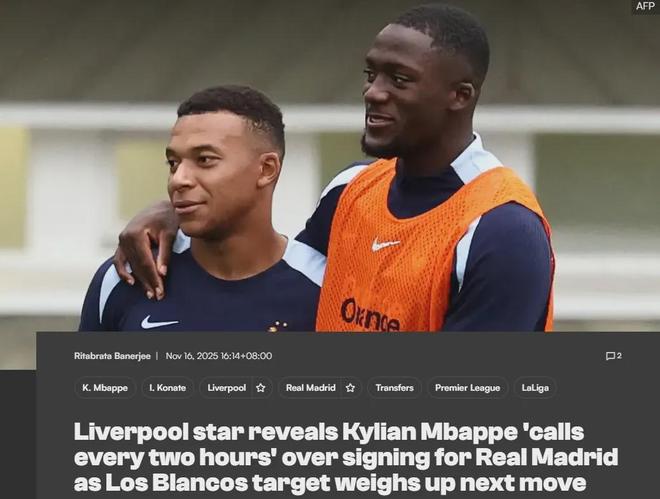 科纳特近日透露,他的同胞姆巴佩“每两个小时”就会给他打电话劝说加盟皇马,而利物浦中卫的合同明年夏天就要到期。
