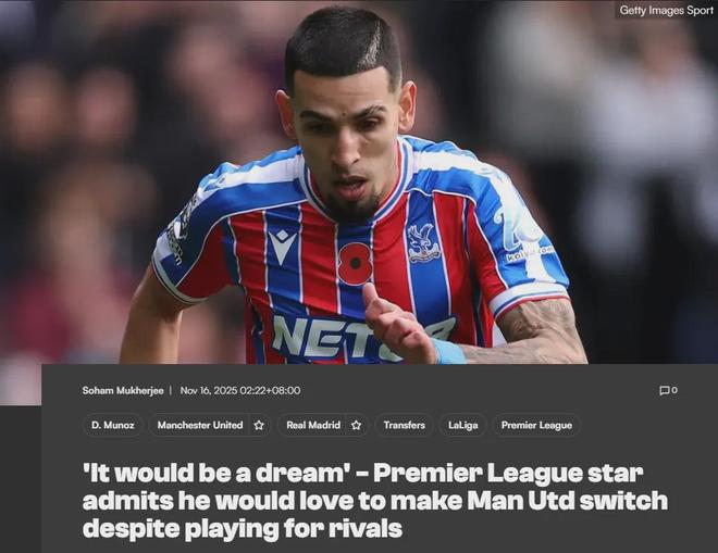 水晶宫球星丹尼尔-穆尼奥斯接受哥伦比亚阿斯报采访时承认,他希望加盟曼联等豪门,这名29岁的边后卫已经引起了巴萨、巴黎等俱乐部的兴趣。