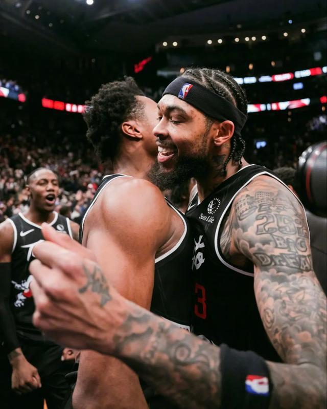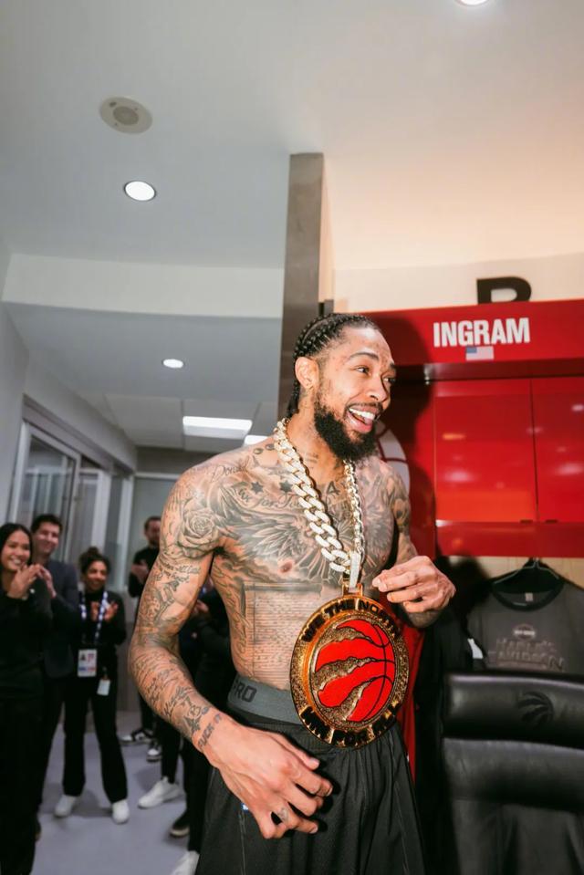 每一场胜利的赛后,猛龙队内都会颁发一条带有猛龙队标的链子,当英格拉姆戴着链子和队友站在一起合影,他已经融入到了这支年轻的团队里,他的职业生涯也久违的迎来了胜利的感觉。