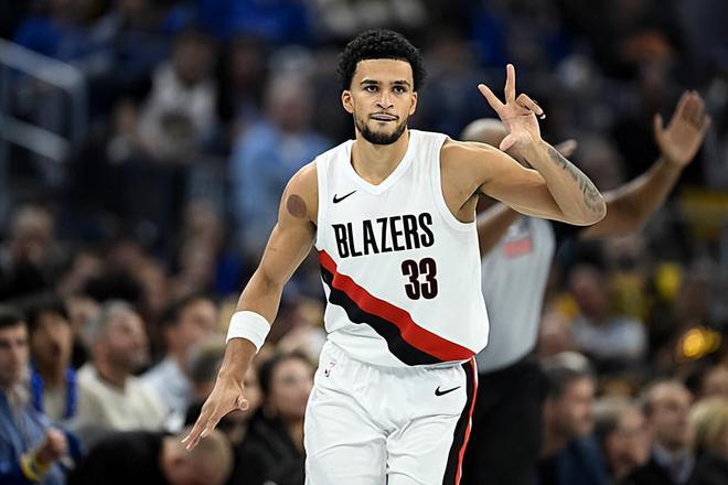 本场比赛中,开拓者的先发锋线大将图马尼-卡马拉(Toumani Camara)的表现可以说是很不理想,完全没有发挥出自己应有的水平。卡马拉全场出场30分18秒,投篮14中4,三分线外11中2,得到了10分5篮板1助攻1盖帽的数据,还有1次失误和4次犯规,正负值为-2。卡马拉在进攻端得到了不少外线出手的机会,然而他的得分能力和投射能力完全没有发挥出来,浪费了大量的机会。不仅如此,他在其他方面对于球队的支持度也并不高,他在防守端具备一定的作用,但是他也没有办法靠着自己的能力改变球队的整体防守。总体来看,卡马拉可以说是完全没有起到作用,以他的个人能力,他本应该在攻防两端都为球队做出更大的贡献的。