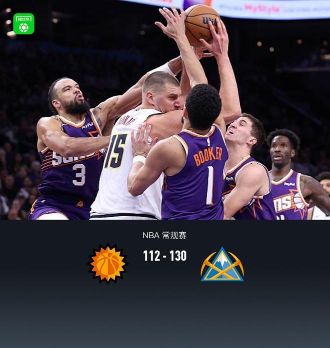 第四节太阳狄龙-布鲁克斯拿下8分,掘金斯宾塞-琼斯拿下11分,最终太阳112-130不敌掘金