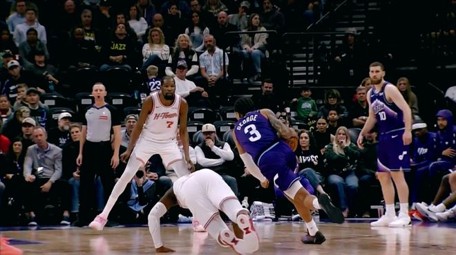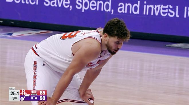 下半场回来,爵士越打越勇,分差进一步被拉大。乌度卡很快叫出暂停,但是暂停回来的进攻仍旧不理想,杜兰特陷入单打的模式中。乔治、乐福连中三分,分差扩大到20分以上。最后时刻,火箭在27秒内连续8分!短短一分多钟,爵士21分的优势,锐减到9分!