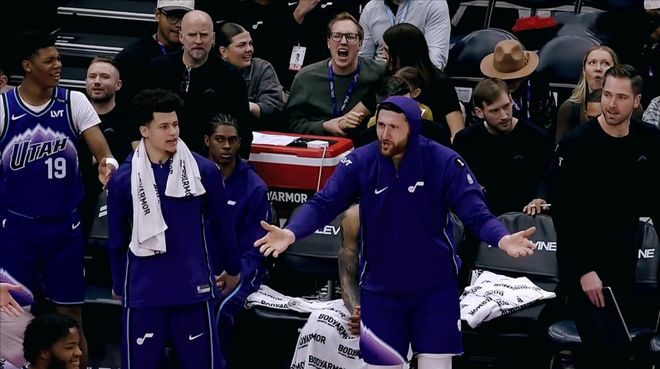 爵士7人得分上双,马尔卡宁29分8个篮板、乔治28分8次助攻,努尔基奇、米哈伊柳克、菲利波夫斯基都有上佳发挥。