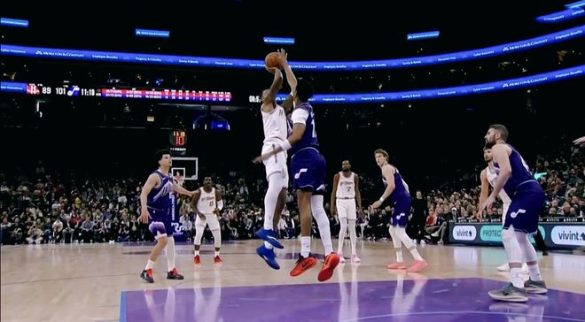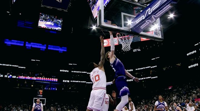 次节再战,整体的局面依旧胶着,火箭的外线频频打铁,乌度卡赶紧将申京等主力换上场。爵士利用内线的优势,为外线的几大投手不断制造机会,乔治飞身暴扣!分差拉开到9分。菲利波夫斯基连吃两个进攻犯规,但是火箭没有抓住机会,半场比赛结束,爵士利用本节的精彩发挥,反超11分!