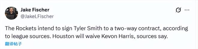 28岁的哈里斯本赛季尚未为火箭队出战任何比赛。作为一名发展联盟老将,2022-24年期间他曾凭借双向合同为奥兰多魔术队出战过34场NBA比赛。