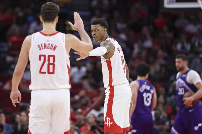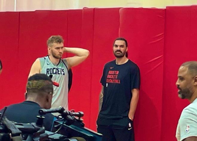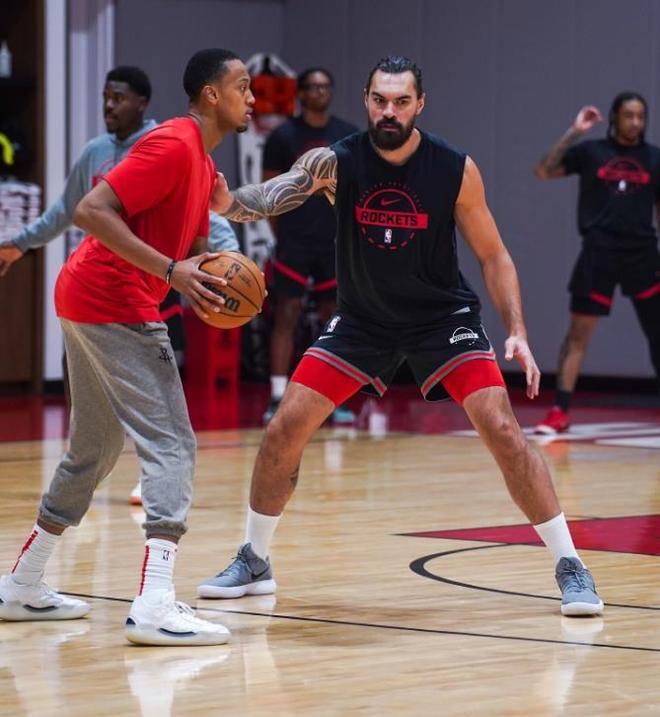 而32岁的老将中锋亚当斯,则是火箭队的前场篮板王,甚至他的前场篮板率在联盟当中都高居第一。32岁的亚当斯虽然不是什么超级中锋,然而他是联盟当中最强壮的内线球员之一。他和申京在一起搭档可以优势互补:亚当斯能护框、能抢篮板,尤其是前场篮板,能够为申京协防和补防;而申京则可以为亚当斯拉开内线空间,他也可以在内线得分,帮助火箭队缓解亚当斯进攻能力不足的压力。