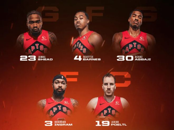 首发阵容方面,猛龙队这边,珀尔特尔可以出战,主帅排出的最新首发五人组为:谢德、巴恩斯、阿巴基、英格拉姆、珀尔特尔;尼克斯这边,唐斯赛前才决定出战,首发阵容临时变更则为:哈特、阿奴诺比、布伦森、布里奇斯、唐斯。