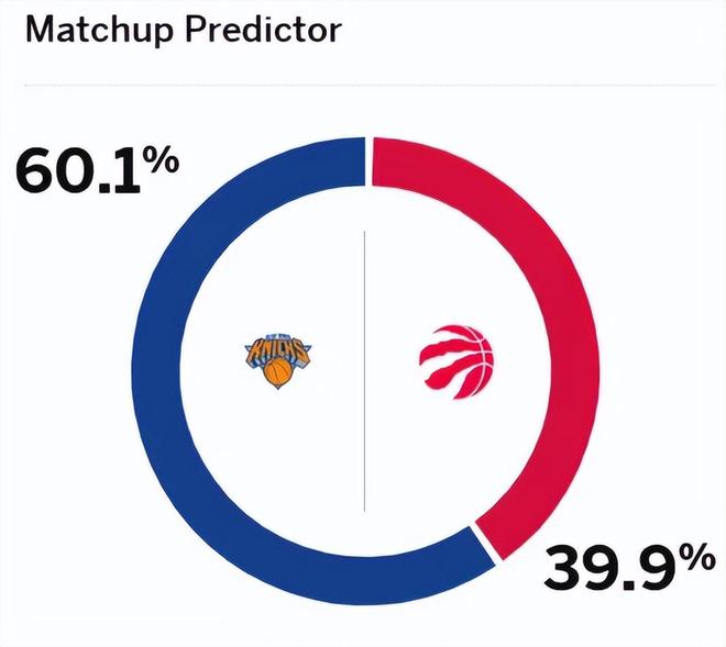 作为对比,尼克斯目前势头正劲,以16胜7负的战绩,豪取3连胜,升至东部第二。赛前,美媒ESPN对本场比赛进行了预测:猛龙队胜率仅有39.9% ,尼克斯胜率则高达60.1% ,差距明显。