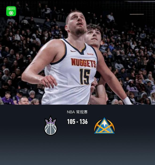 北京时间12月12日NBA 常规赛,萨克拉门托国王对阵丹佛掘金。首节掘金便依靠约基奇高效发挥下建立15分领先,半场掘金77-54国王,三节结束掘金领先27分,末节双方提前收兵换下主力,最终掘金136-105大胜国王。