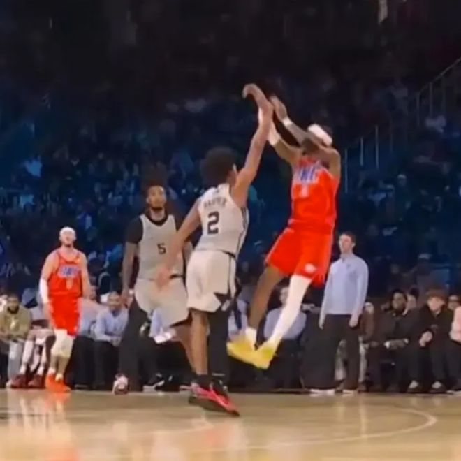 最夸张的是第4节中段,亚历山大有非常夸张的造犯规姿势,双腿用力往前伸,扩大圆柱体,撅着屁股投篮,还能造成原地不动的哈珀投篮犯规,真没见过这种哨,这实在是太过分了。以前的哈登都没这种哨子,往前跳造犯规,裁判竟然吹马刺队垫脚,这是不是有点太黑了?踩别人的脚还有俩罚球。这都是什么情况?