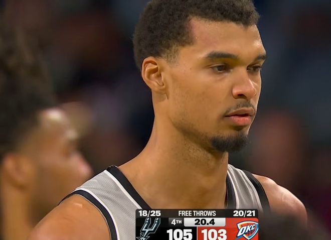 第3节后半段,当马刺领先之后,文班亚马由于有时间限制下去休息,裁判开始连续吹雷霆犯规,5分钟时间连吹了马刺队8个犯规,1个进攻犯规加上7个防守犯规,硬生生靠着哨子,让两队在三节结束战成78:77只差1分了,没有这些哨子,雷霆早就崩溃了。
