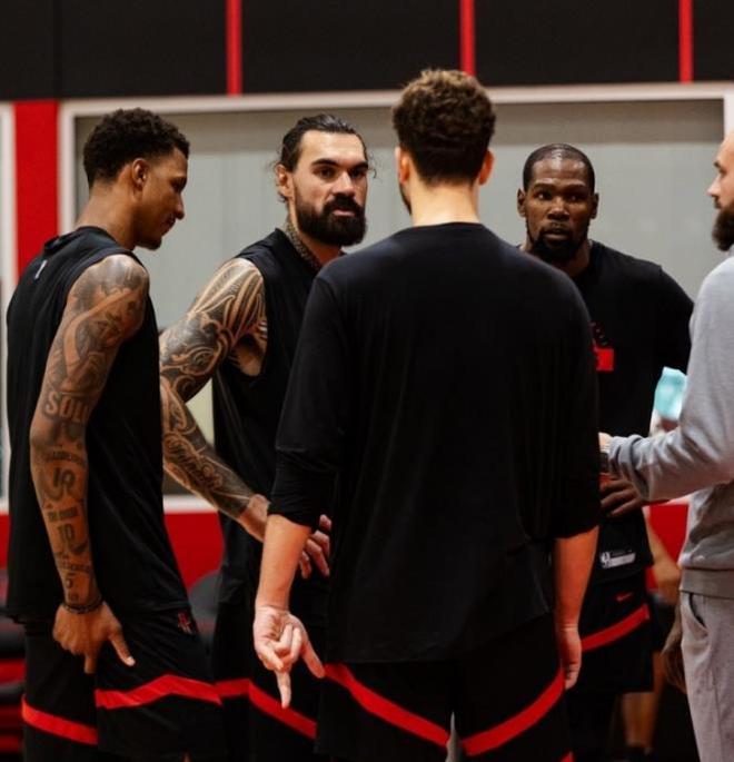 火箭队外线有不少高大的三分射手,像是超级前锋杜兰特,还有火箭队的小贾巴里·史密斯,以及即将复出的伊森,甚至申京本赛季的三分投篮能力都不弱。有这么多的射手在,火箭队不需要亚当斯在外线去投三分,他只要在内线多抢前场篮板,镇守篮下就足够了。