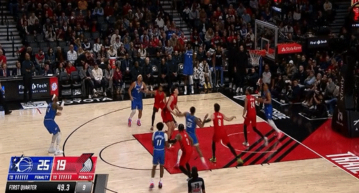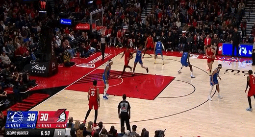第三节开拓者阿夫迪亚拿下11分,魔术贝恩拿下9分,第三节结束开拓者80-89落后魔术