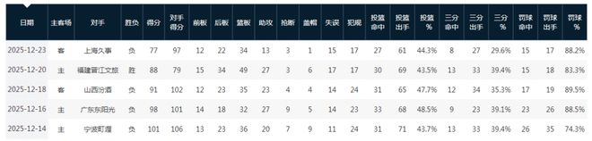 本赛季至今,浙江男篮仅有1胜4负的糟糕战绩,浙江男篮除88-79战胜实力孱弱的福建男篮外,其余4场分别输给宁波男篮、广东男篮、山西男篮与上海男篮,其中3个对手是强队。