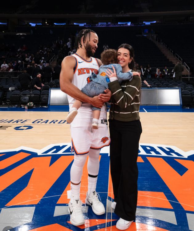 首先是球队核心球员布伦森家人来到现场,他与妻子一起抱着孩子在赛后合照,看得出来,布伦森的妻子非常开心,毕竟,尼克斯也赢下了今年的圣诞大战。