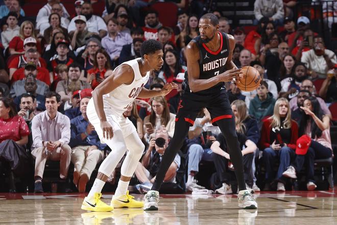 加上杜兰特本场手感滚烫,火箭队外线三分也稳稳输出,更是让骑士队在防守端头尾不能兼顾,火箭队是骑士队给什么他们就能在进攻端拿什么,因此早早三节打卡拿下胜利。