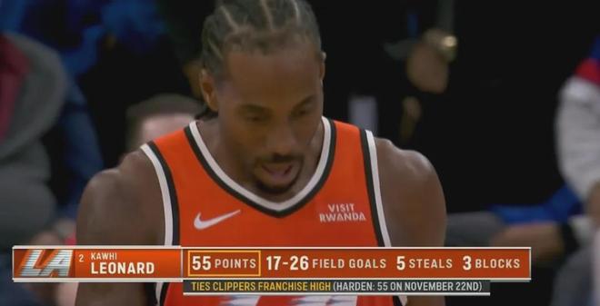 伦纳德三节51分,全场打完投篮26中17,以高达约65%命中率狂轰55分外加11板2助5断3帽,带领快船112-99锤爆东部老大活塞。
