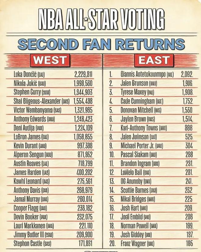 值得一提的是,截至目前数轮全明星投票当中,阿夫迪亚都力压杜兰特、詹姆斯两大超级巨星,排在西部第七,前场第三,这位25岁的以色列前锋,即将踏上职业生涯首次全明星之旅,他也将成为杨瀚森NBA生涯遇见的第一个全明星队友。